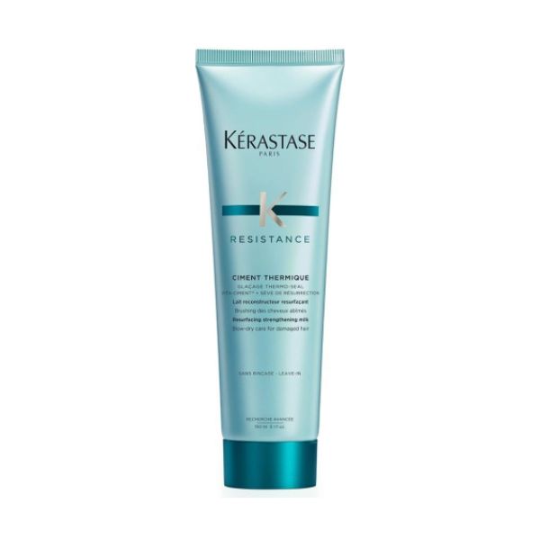 Kérastase Resistance Ciment Thermique is a leave-in blow-dry and heat-styling cream designed to protect, smooth, and strengthen weakened or damaged hair while providing effective heat defense.