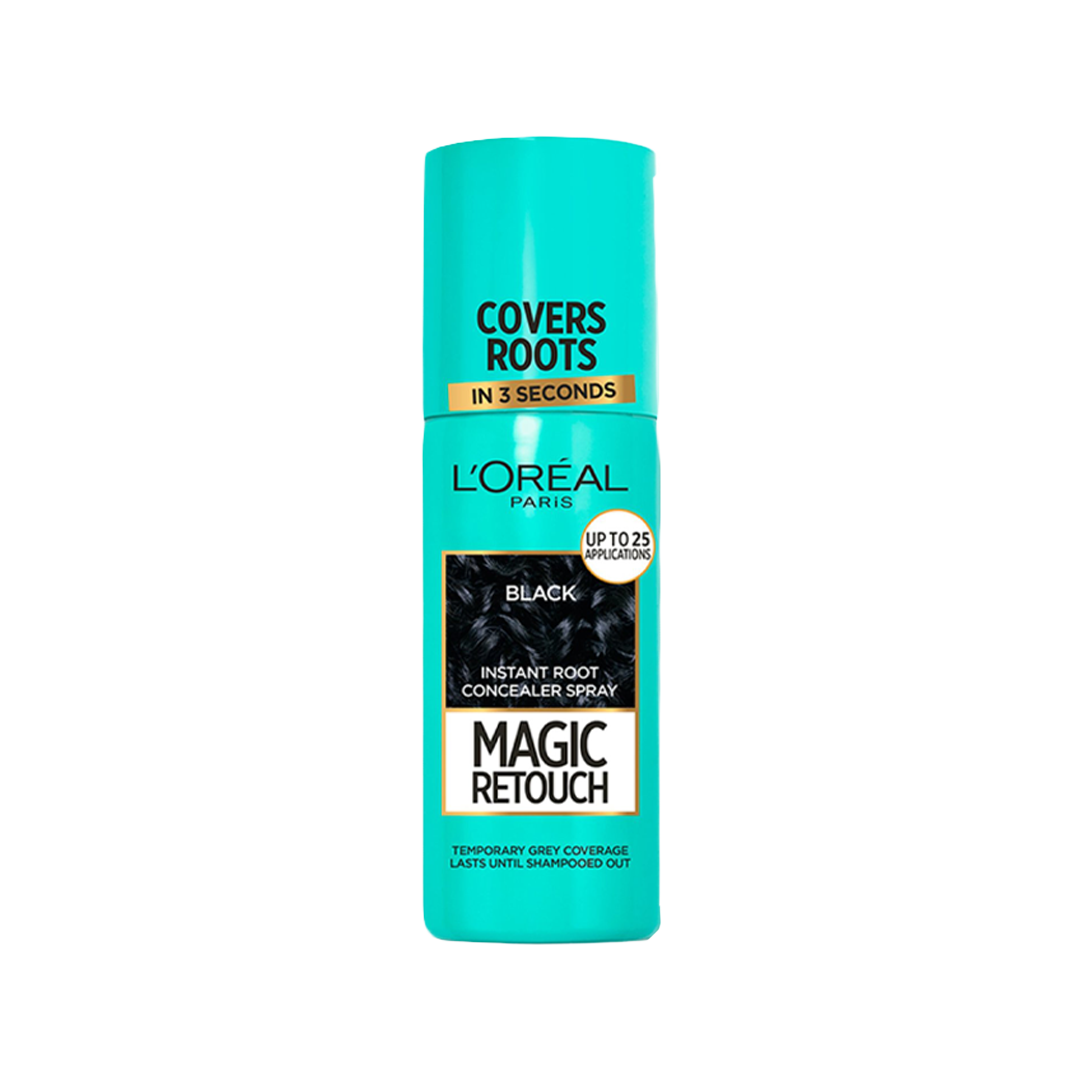 L'Oreal Paris Magic Retouch is an instant root concealer spray that covers grey roots in just one quick spray - when. Where and how you need it. Perfectly matches and blends with your hair color. 3 seconds to a flawless root touch up. The pinpoint micro-diffuser precisely targets greys and the rich color pigments give you perfectly blended coverage. Lasts until washed out. No transfer. Lightweight formula.